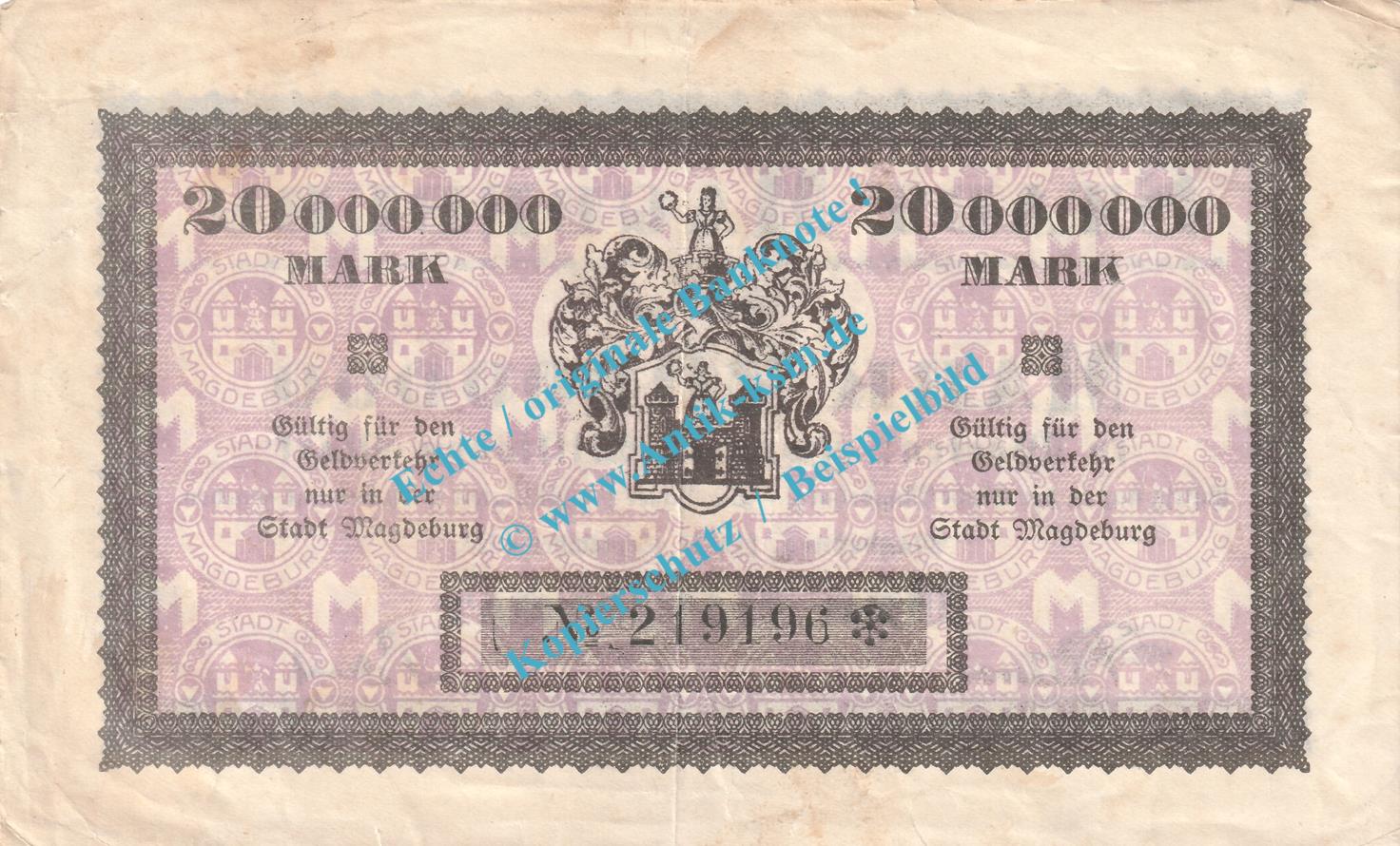 Magdeburg , Notgeld 20 Millionen Mark Schein in gbr. Keller 3381.h , Sachsen Anhalt 1923 Grossnotgeld Inflation