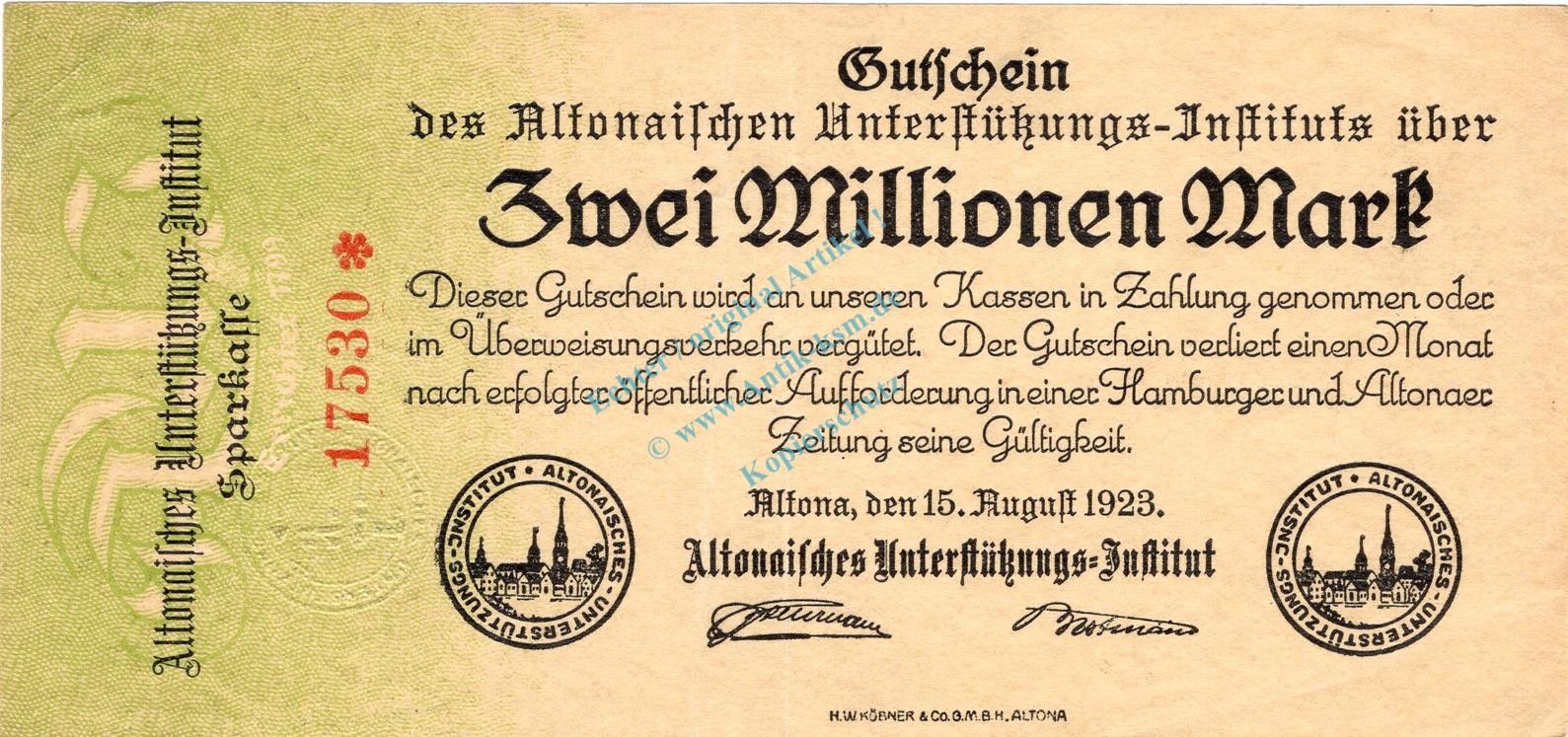 Altona , Banknote 2 Millionen Mark Schein L-gbr. Keller 81.c , Schleswig 1923 Inflation