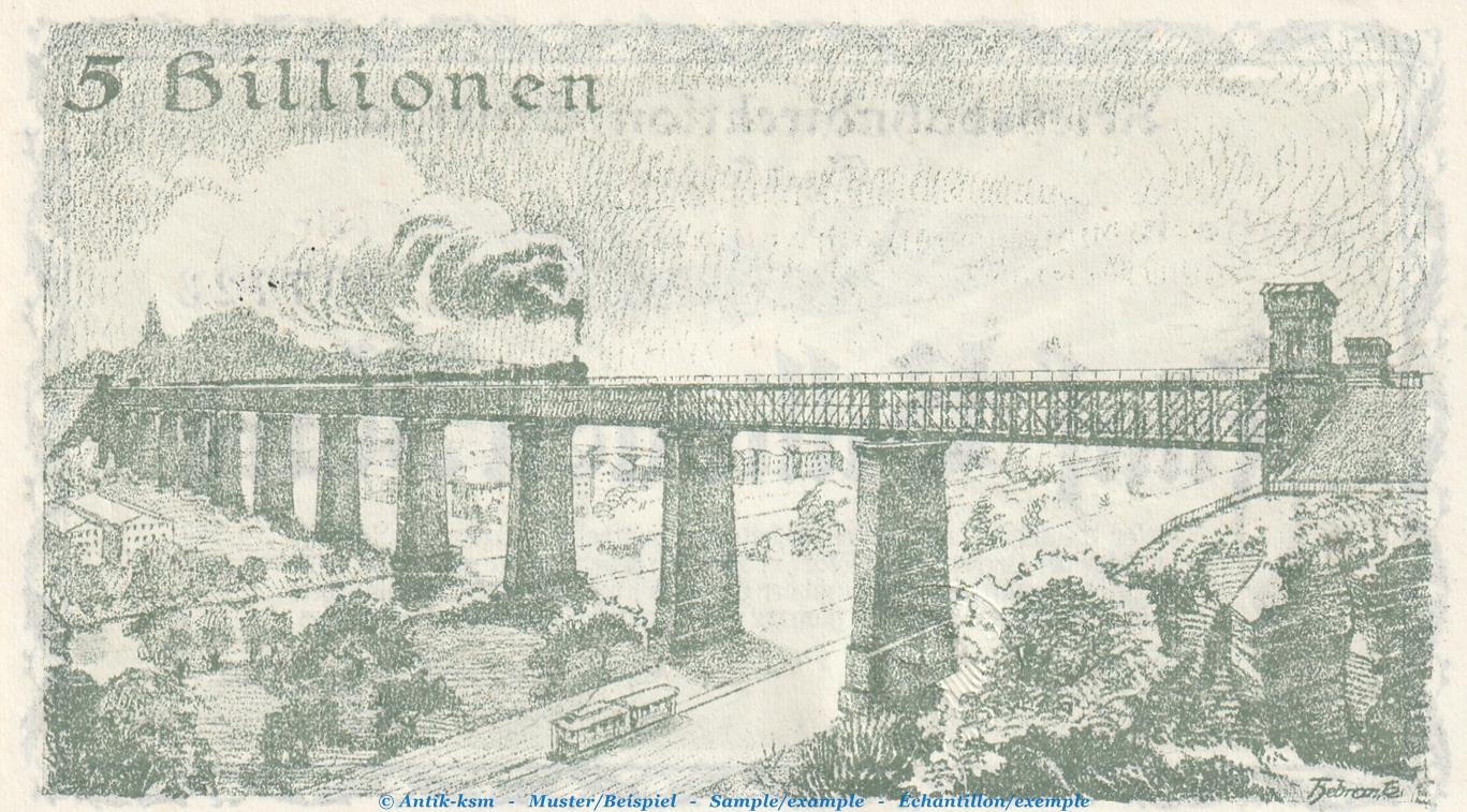 Notgeld Reichsbahn Stuttgart , 5 Billionen Mark Schein in kfr. Keller 4926.L von 1923 , Württemberg Inflation