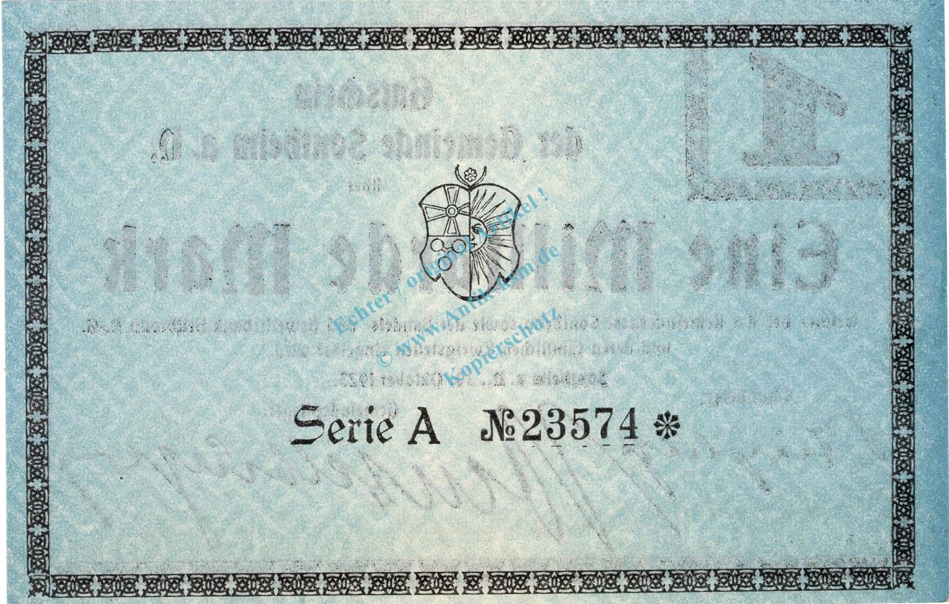 Sontheim , Banknote 1 Milliarde Mark Schein in kfr. Keller 4528 , Württemberg 1923 Inflation