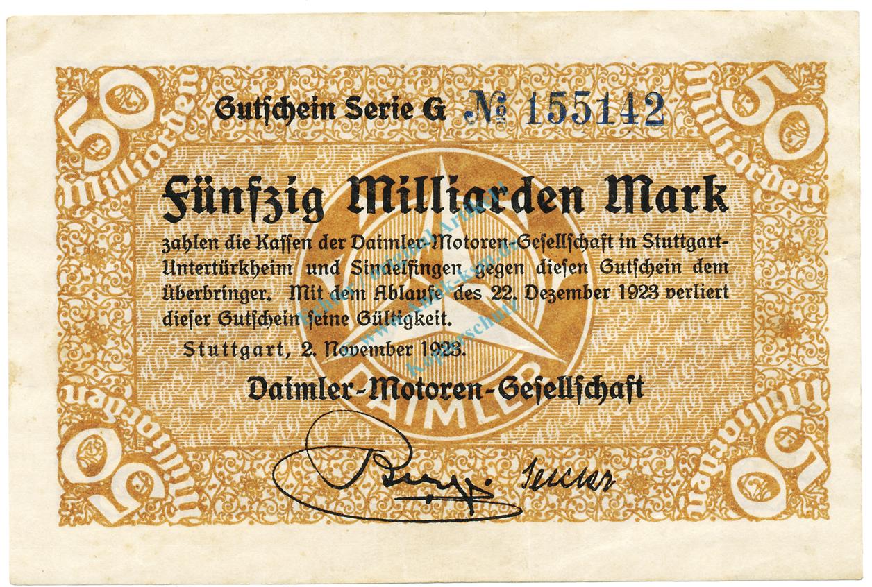 Stuttgart , Banknote 50 Milliarden Mark gbr. Keller 4923.d , Württemberg 1923 Inflation