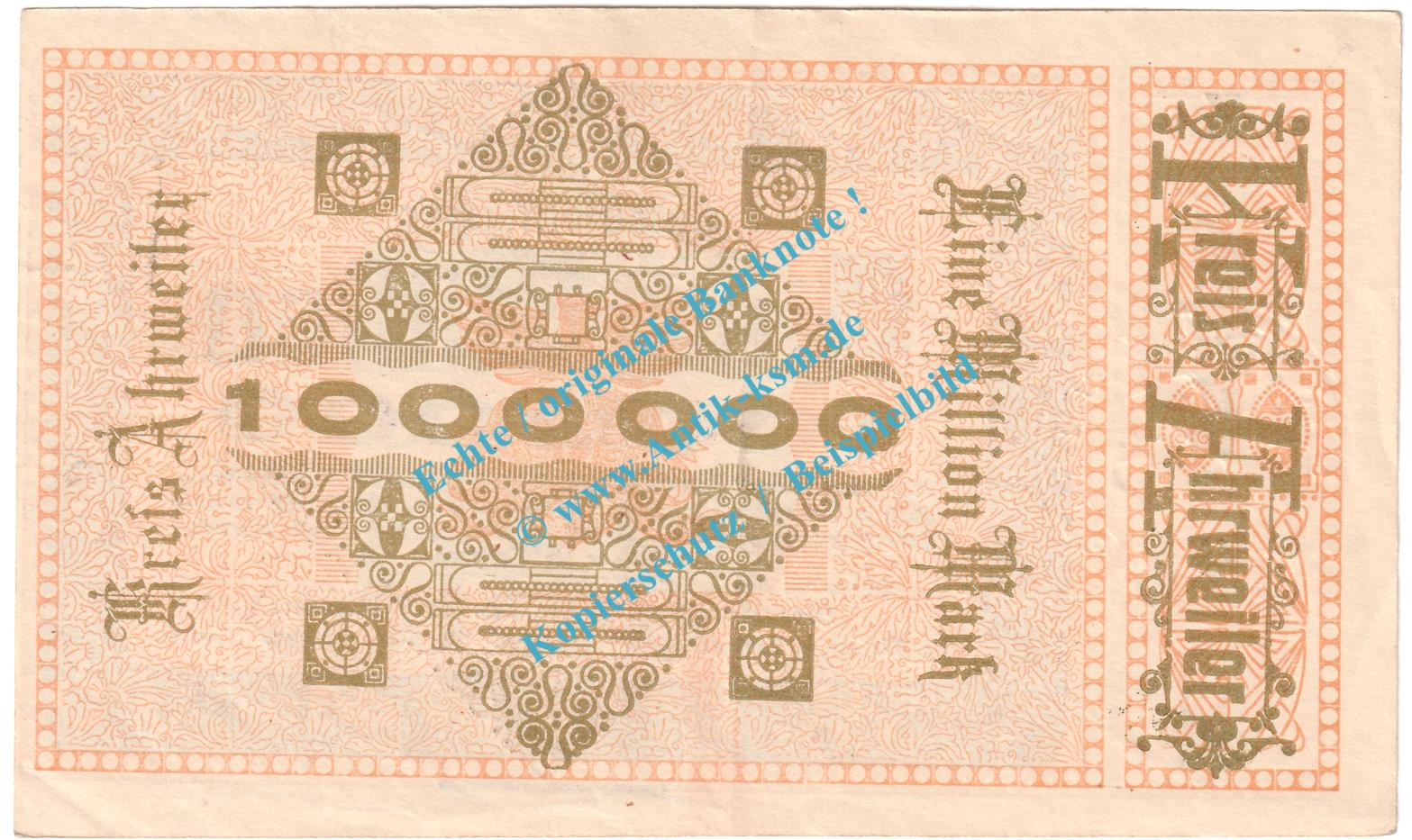 Ahrweiler , Notgeld 1 Million Mark -Stern- in kfr. Keller 28.a.39-41 , Rheinland 1923 Grossnotgeld Inflation