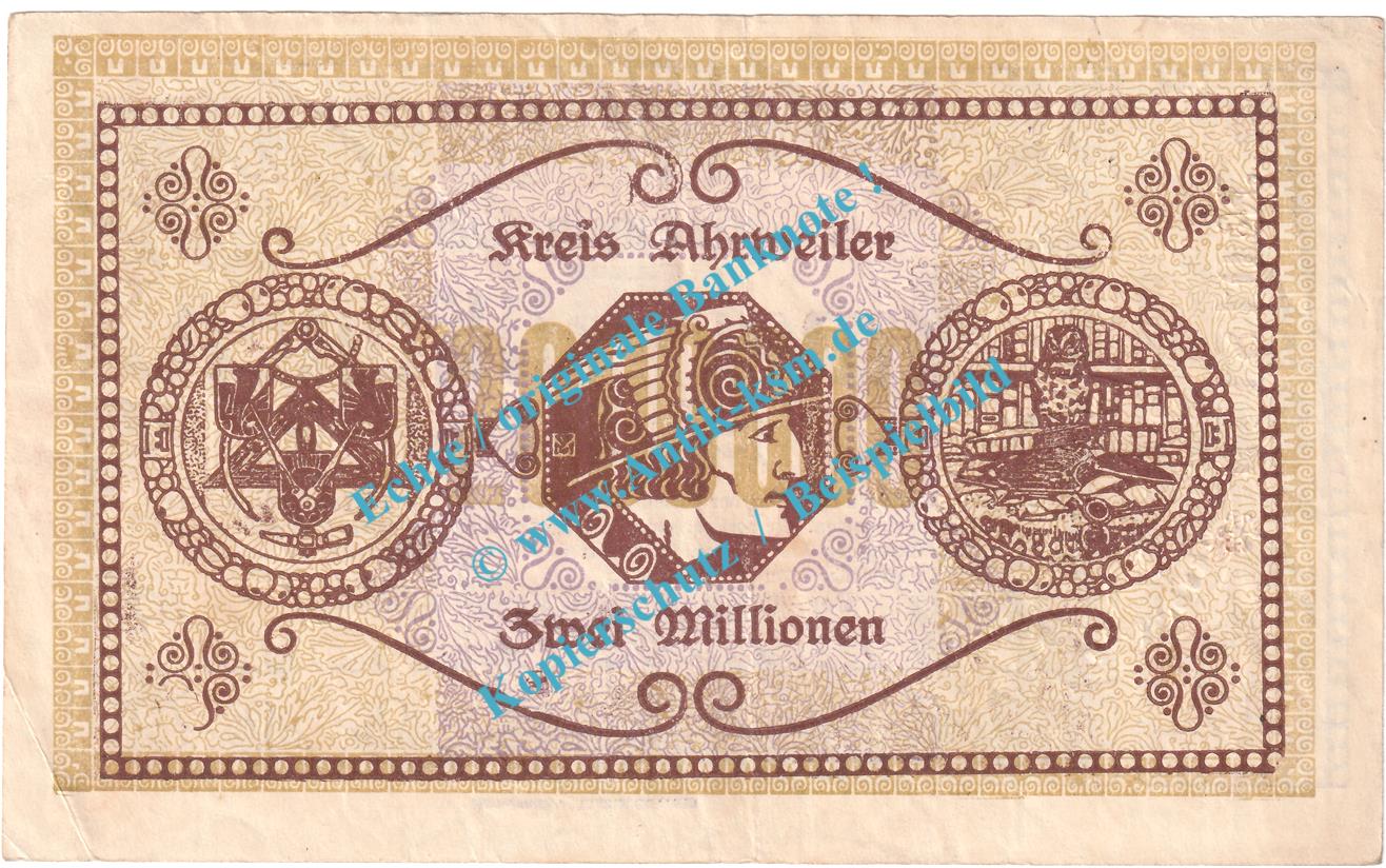 Ahrweiler , Notgeld 2 Million Mark -Stempel- in gbr. Keller 28.a.42 , Rheinland 1923 Grossnotgeld Inflation