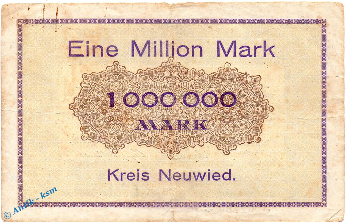 Banknote Neuwied , Kreis , 1 Million Mark Schein in gbr. Keller 3903.g , 01.08.1923 , Rheinland Großnotgeld Inflation