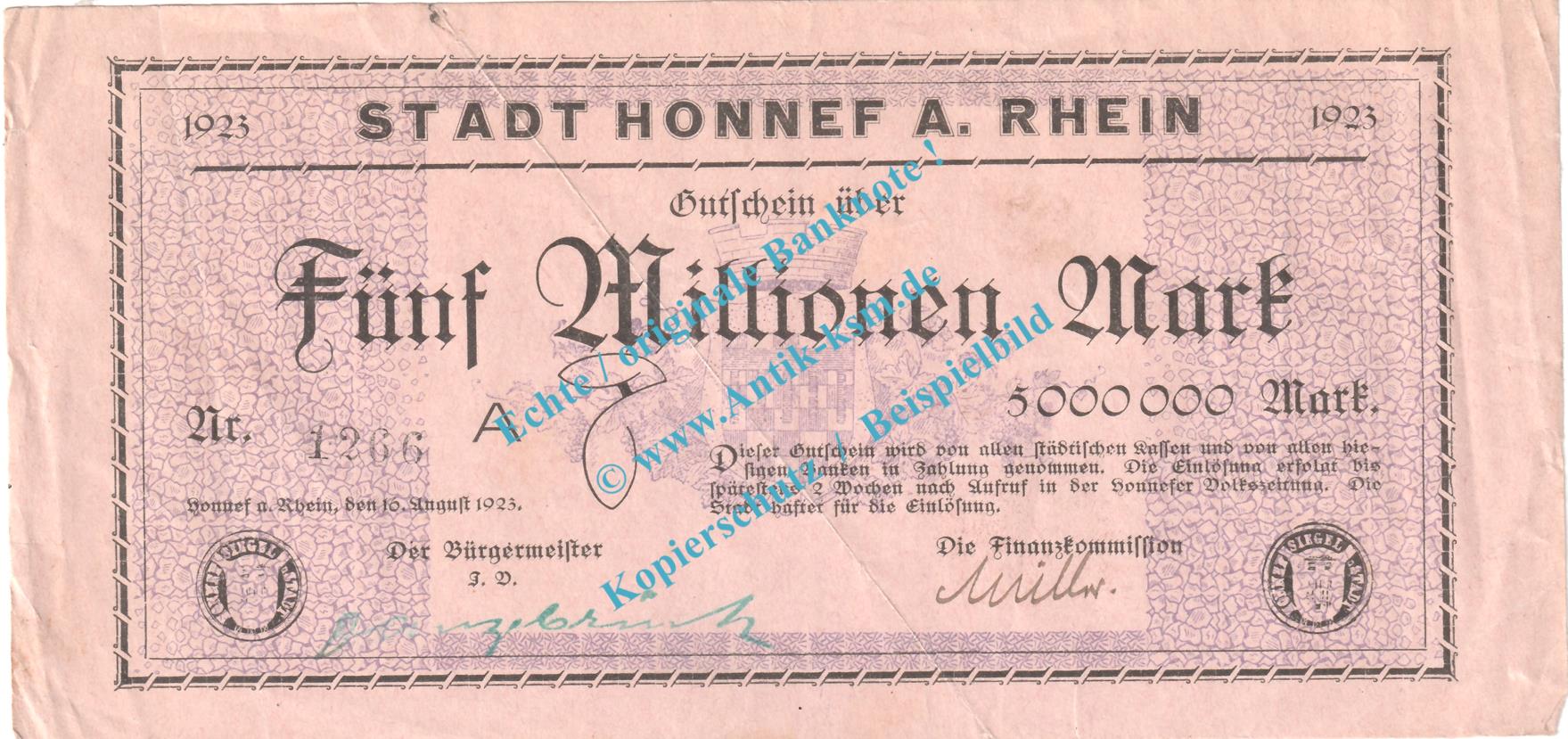 Honnef , Notgeld 5 Millionen Mark -rosa- in gbr. Keller 2443.i , Rheinland 1923 Grossnotgeld Inflation