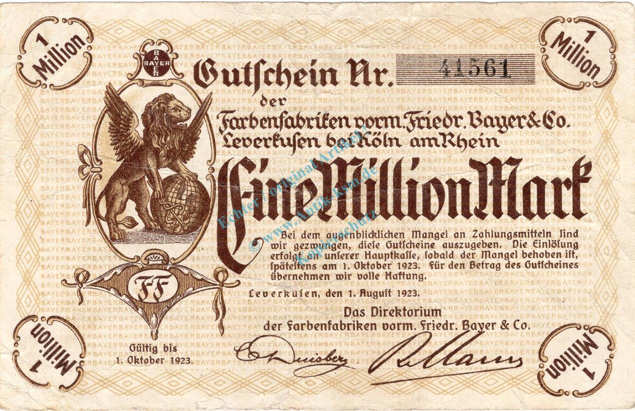 Knapsack , Banknote 1 Million Mark Schein gbr. Keller 2682 , Rheinland 1923 Inflation