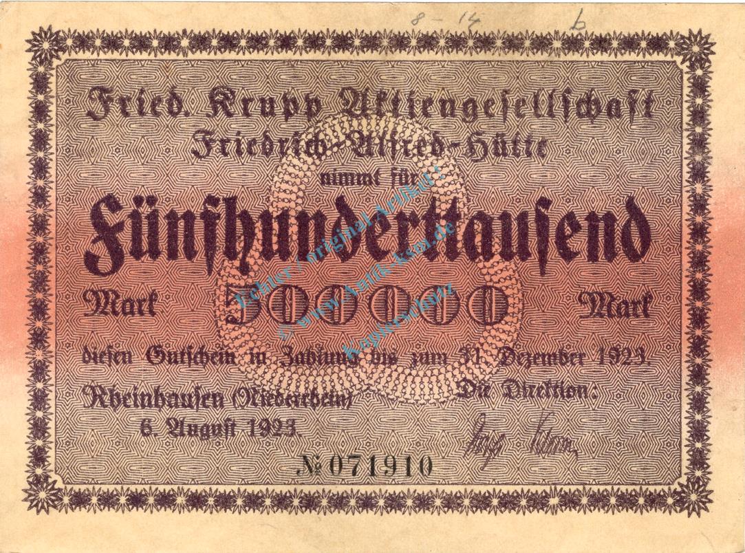Gutschein : Krupp Aktiengesellschaft , Friedrich Alfred Hütte Rheinhausen