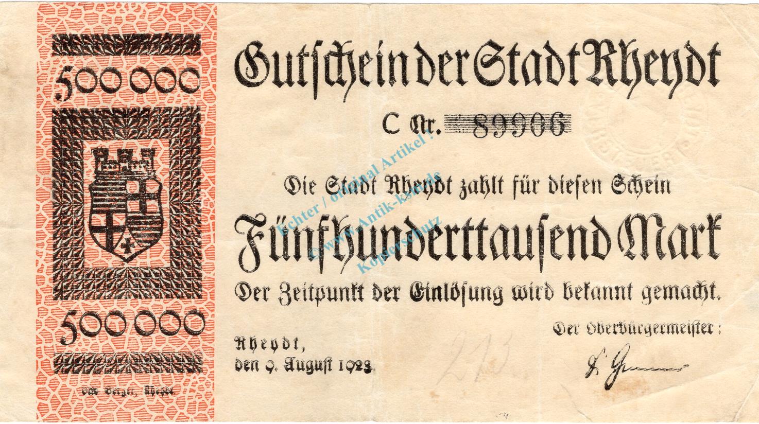 Das Bild zeigt einen der hier angebotenen Sätze oder Scheine als Beispiel / Muster
