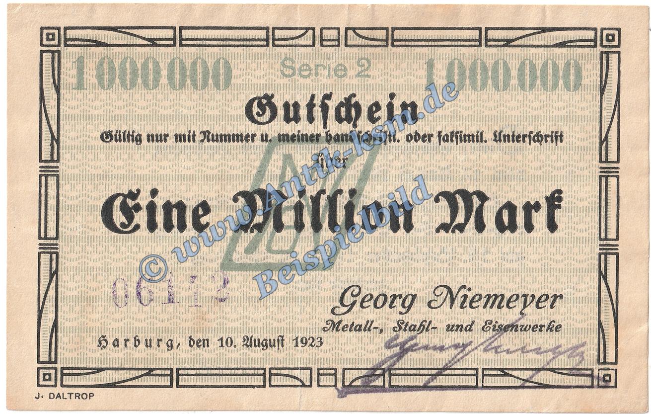 Harburg Niemeyer , Banknote 1 Million Mark Schein in L-gbr. Keller 2208.b , Niedersachsen 1923 Grossnotgeld Inflation