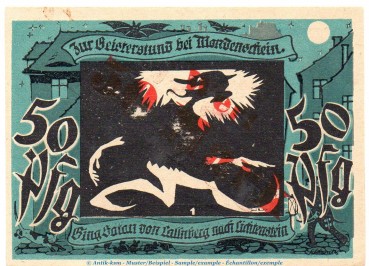 Gutschein / Banknote , Überdruck Fünfzig Mark , Stadt Lichtenstein-Callnberg , Grossnotgeld