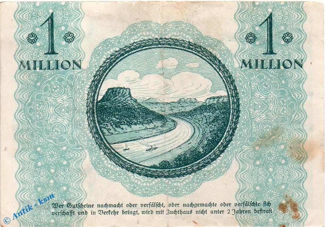 Banknote Pirna , 1 Million Mark Schein in gbr. Keller 4322.a , 01.09.1923 , Sachsen Großnotgeld Inflation