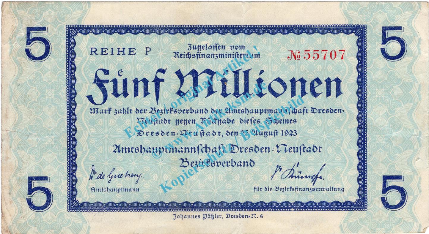 Dresden , Notgeld 5 Millionen Mark Schein in gbr. Keller 1121... von 1923 , Sachsen 1923 Inflation