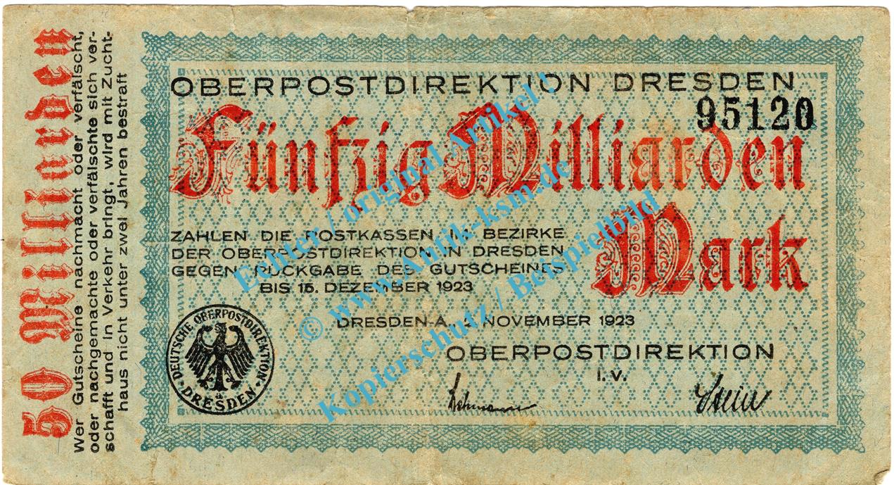 Dresden , Notgeld 50 Milliarden Mark Schein in gbr. Bühn 1258.2 , Sachsen 1923 Inflation