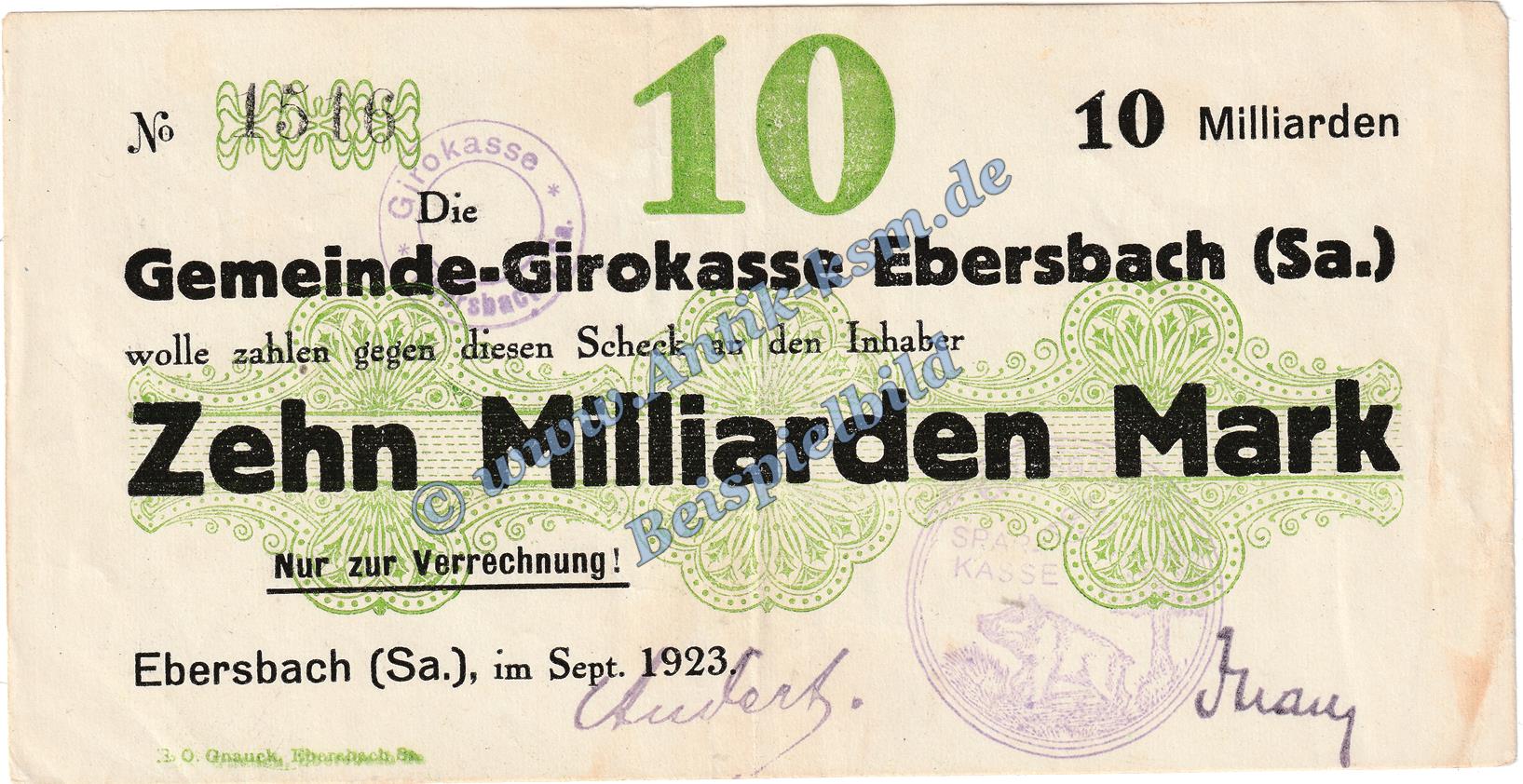 Ebersbach , Banknote 10 Milliarden Mark Schein in gbr. Keller 1213.k , Sachsen 1923 Grossnotgeld Inflation