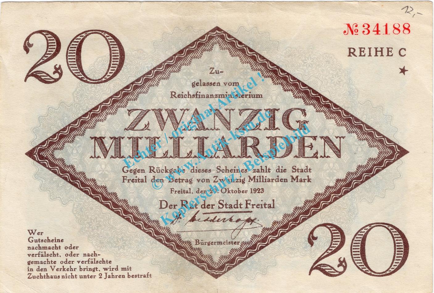 Freital , Banknote 20 Milliarden Mark Schein in L-gbr. Keller 1603.f , Sachsen 1923 Grossnotgeld - Inflation