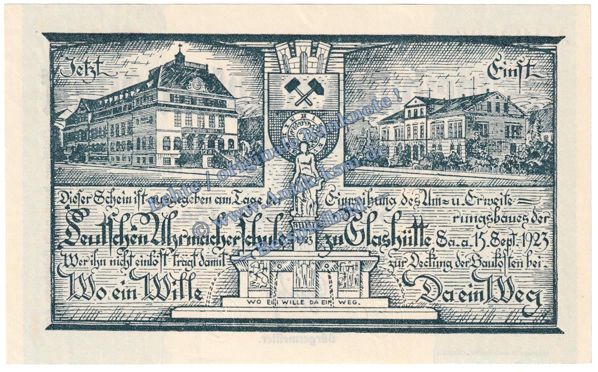 Glashütte , Banknote 200.000 Mark Schein in kfr. Keller 1793.d , Sachsen 1923 Grossnotgeld - Inflation