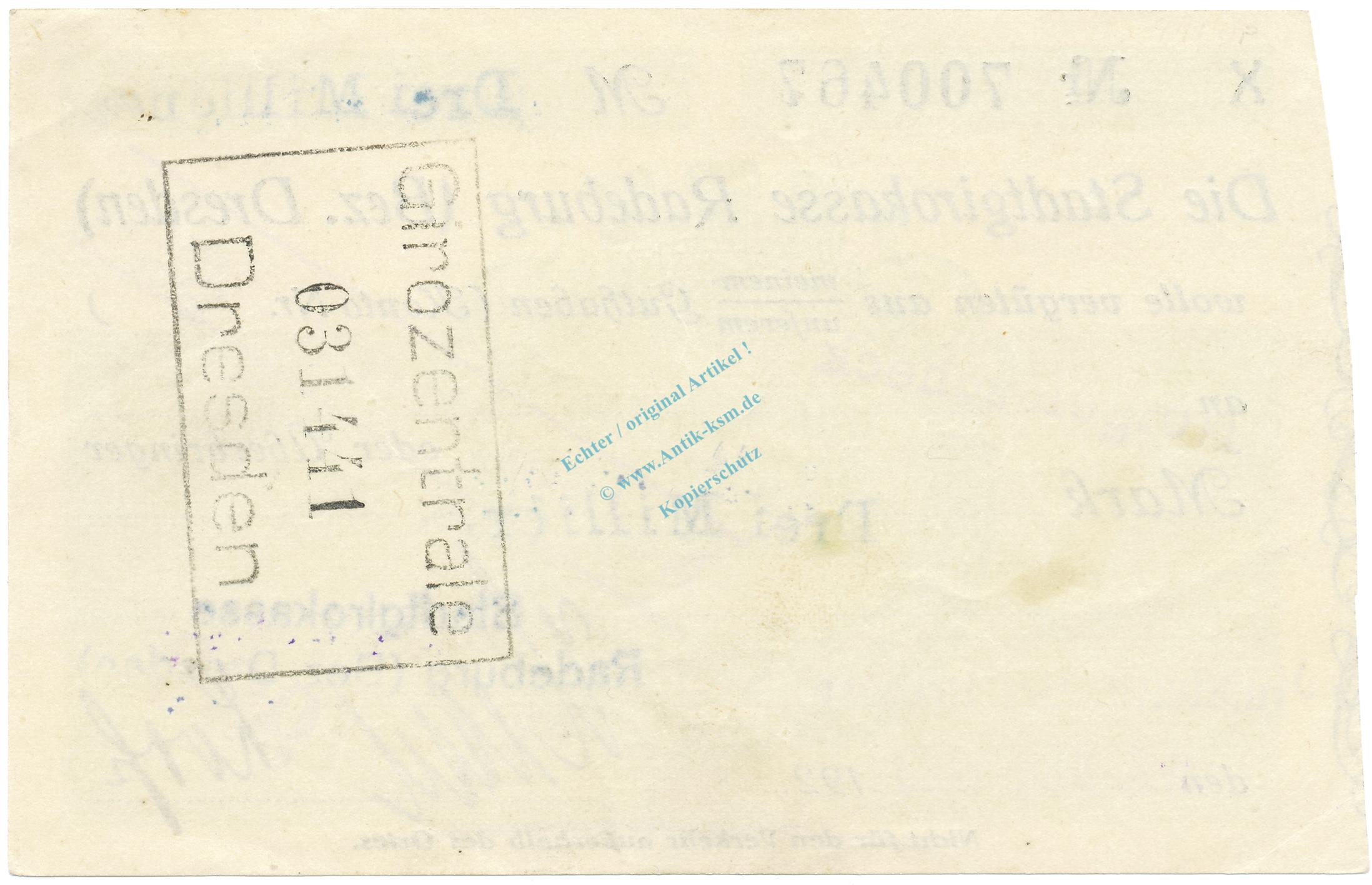 Radeburg , Banknote 3 Million Mark Scheck unc-kfr. Keller 4414.p , Sachsen 1923 Inflation