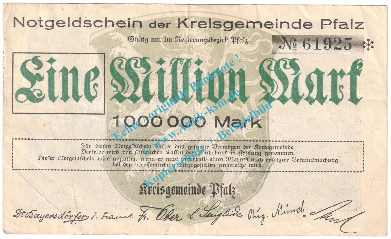 Speyer , Notgeld 1 Million Mark Schein in gbr. Keller 4286.a , Pfalz 1923 Grossnotgeld Inflation