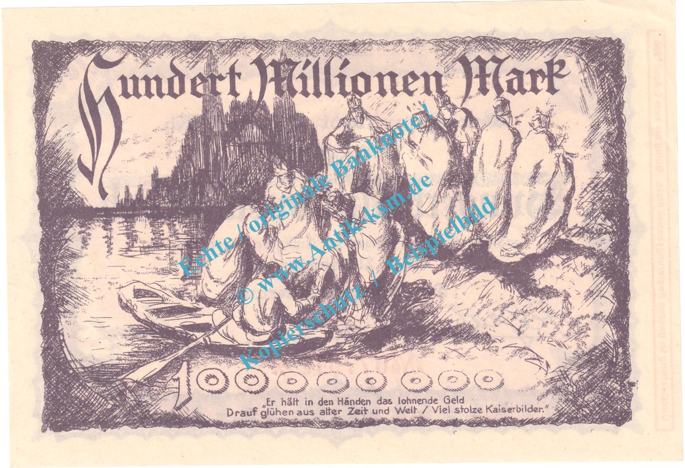 Speyer , Notgeld 100 Millionen Mark Schein in kfr. Keller 4834.p , Pfalz 1923 Grossnotgeld Inflation