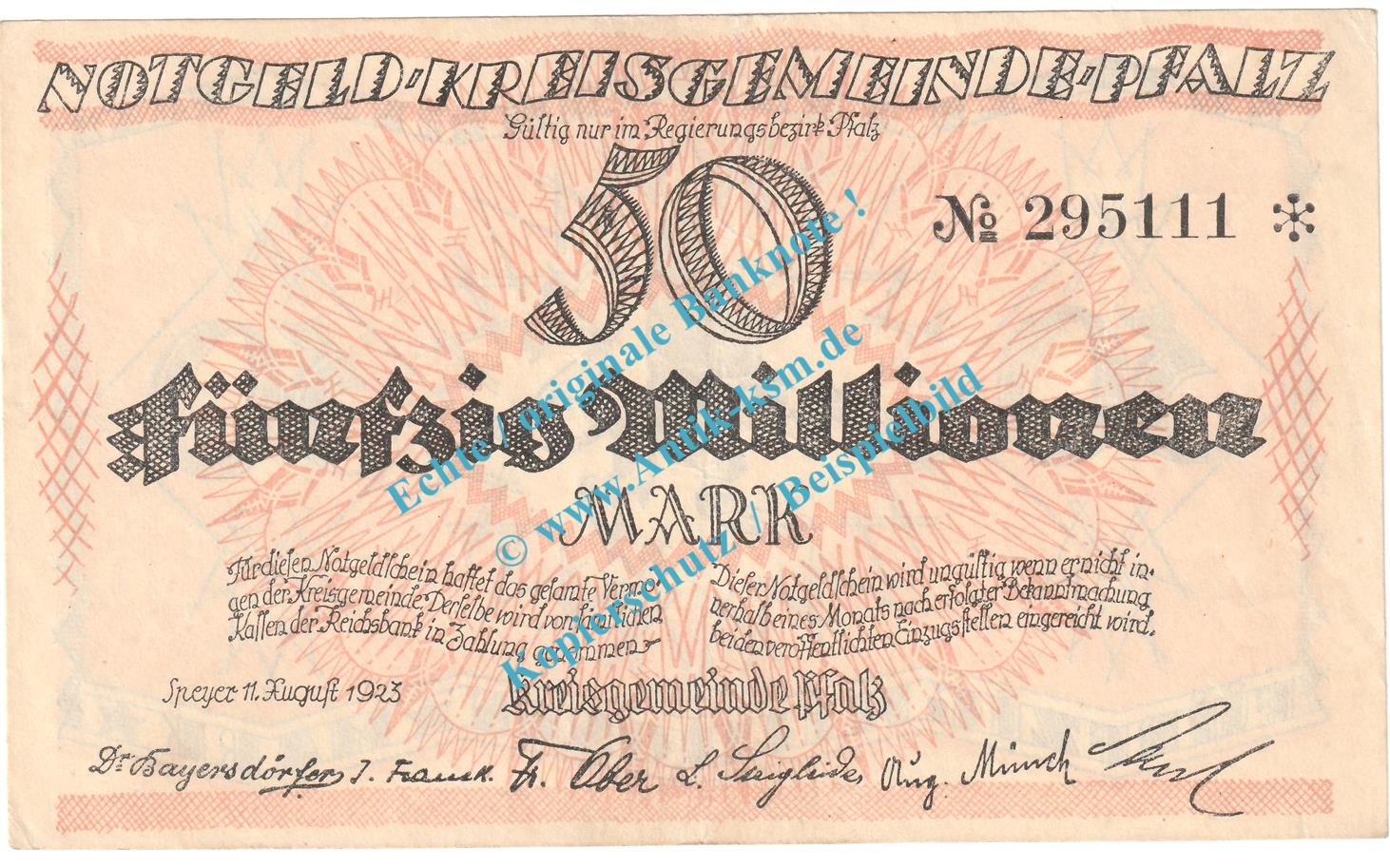 Speyer , Notgeld 50 Millionen Mark Schein in L-gbr. Keller 4286.b , Pfalz 1923 Grossnotgeld Inflation