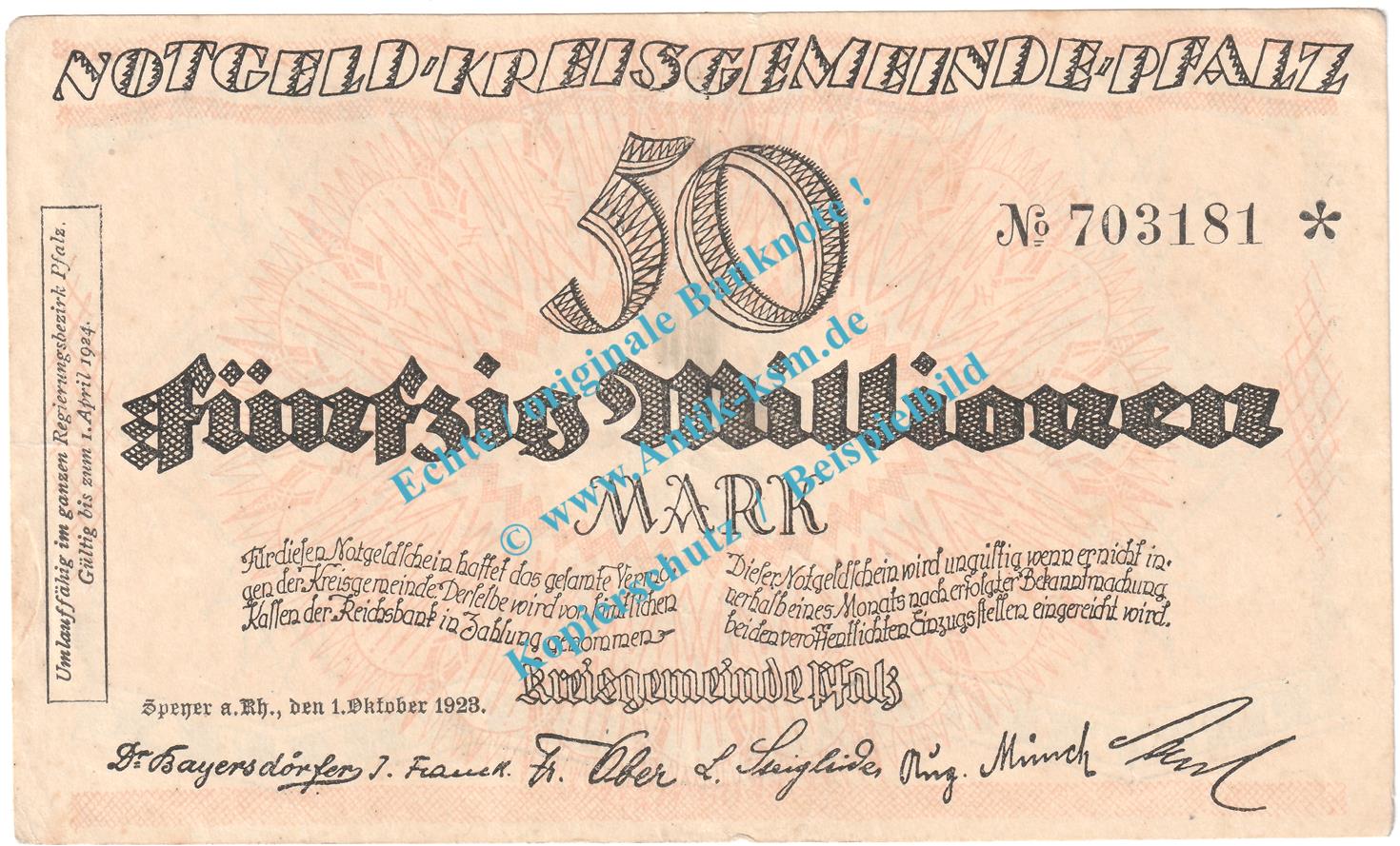 Speyer , Notgeld 50 Millionen Mark Schein in L-gbr. Keller 4286.c , Pfalz 1923 Grossnotgeld Inflation