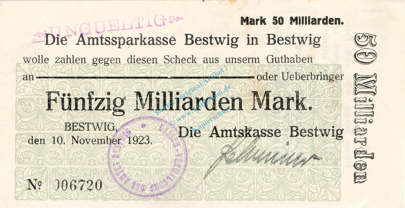 Bestwig , Banknote 50 Milliarden Mark Schein unc-kfr.E Keller 386.d , Westfalen 1923 Inflation