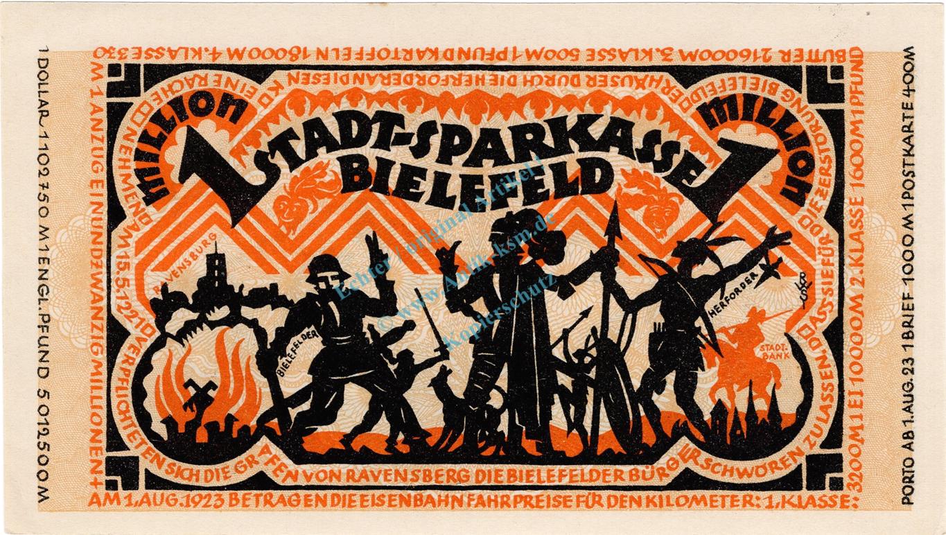 Bielefeld , Banknote 1 Million Mark unc-kfr. Keller 415.a , Westfalen 1923 Inflation