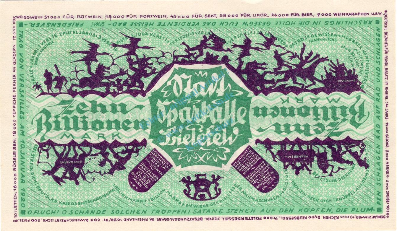 Bielefeld , Banknote 10 Billionen Mark Schein in unc-kfr Keller 415.i , Westfalen 1923 Inflation