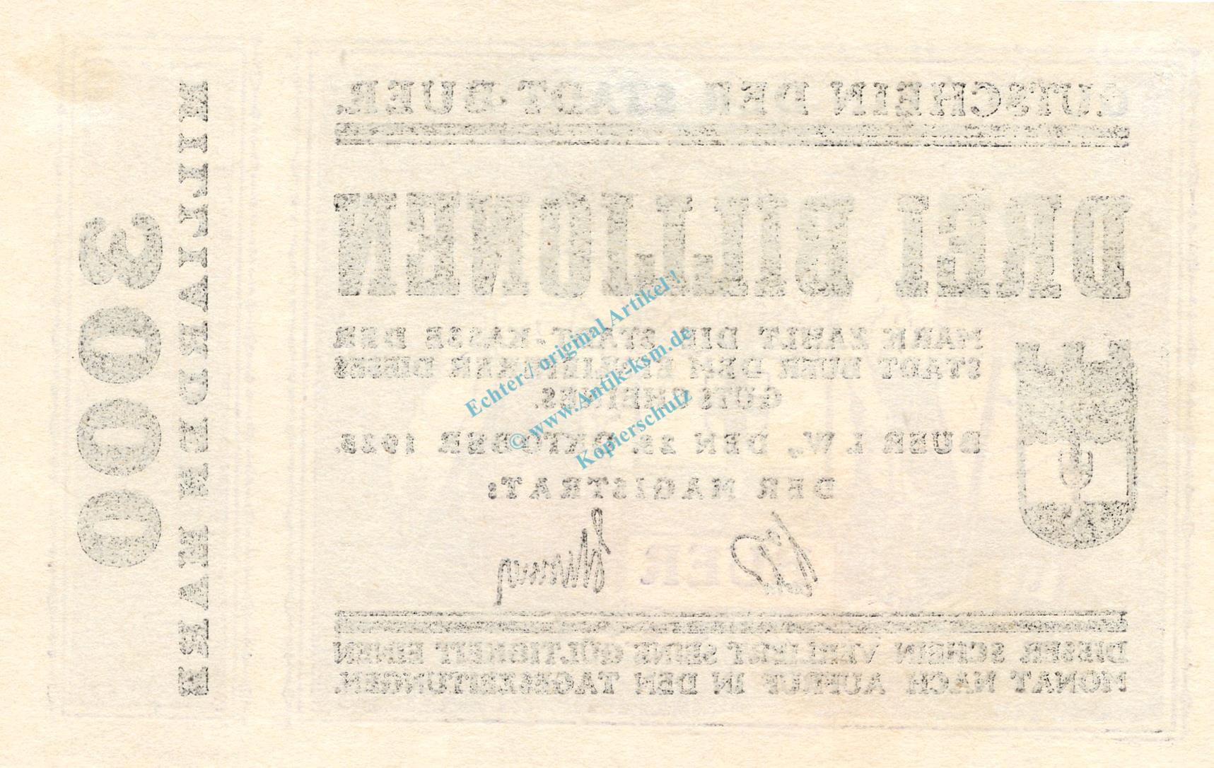 Buer , Banknote 3 Billionen Mark Schein in unc-kfr Keller 659.h , Westfalen 1923 Inflation