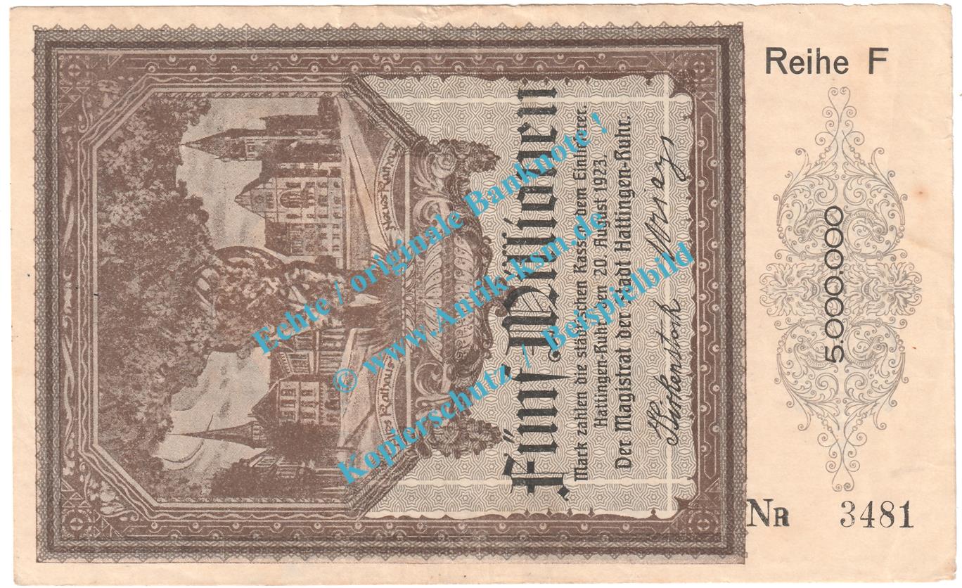 Hattingen , Notgeld 5 Millionen Mark Schein in gbr. Keller 2265.b , Westfalen 1923 Grossnotgeld Inflation