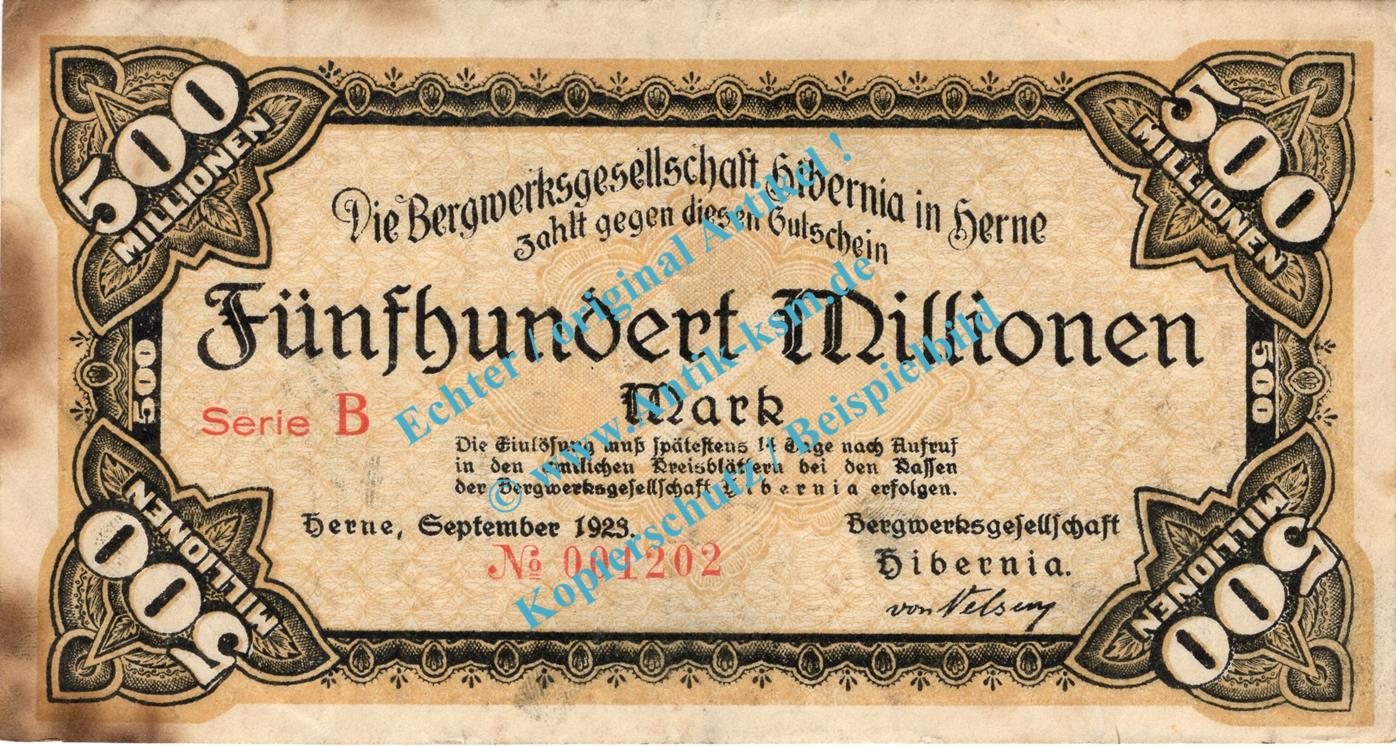 Herne , Banknote 500 Millionen Mark Schein in gbr. Keller 2343.i , Westfalen 1923 Grossnotgeld - Inflation