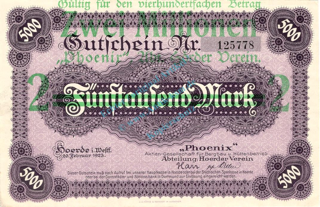 Hörde , Banknote 2 Millionen Schein unc-kfr. Müller 2135.W3 , Westfalen 1922 Inflation