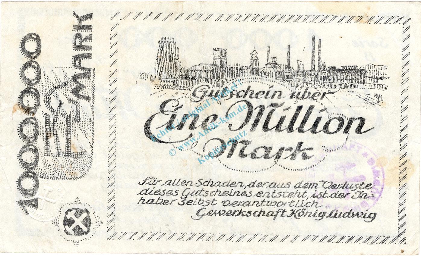 Recklinghausen , Banknote 1 Million Mark Schein gbr. Keller 4465.b , Westfalen 1923 Inflation