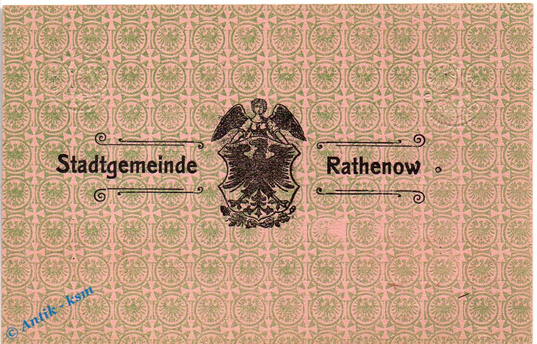 Banknote Rathenow , 5 Mark Schein in kfr. Geiger 437.01 , 12.11.1918 , Brandenburg Großnotgeld