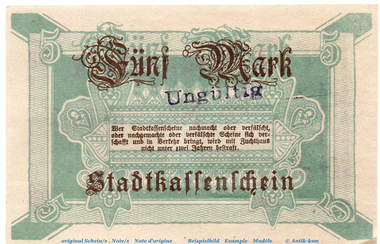 Banknote Fürstenwalde , 5 Mark Schein in kfr.E , Geiger 164.01 , 03.12.1918 , Brandenburg Großnotgeld