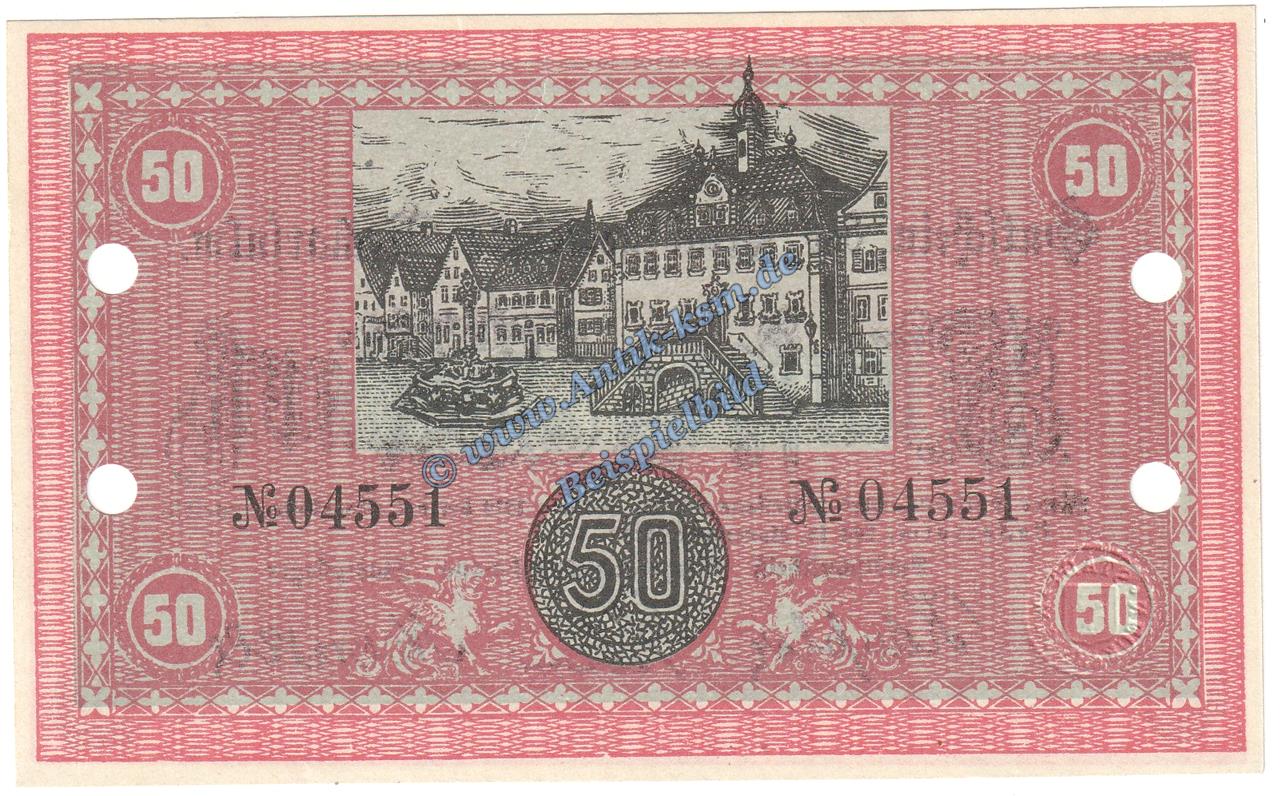 Neckarsulm , Banknote 50 Mark Schein in kfr.E , Geiger 368.03 , Württemberg 1918 Grossnotgeld