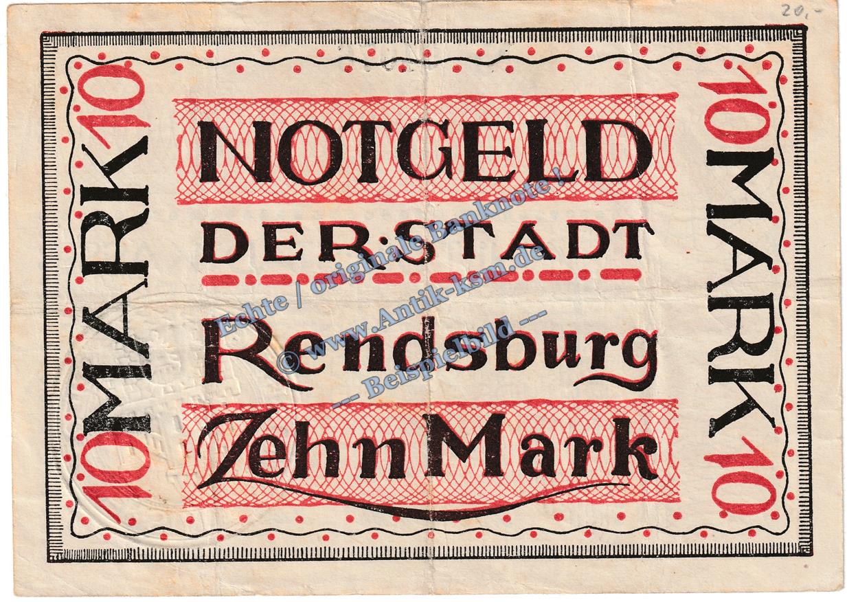 Gutschein / Banknote über Zehn Mark , Stadt Rendsburg , Großnotgeld