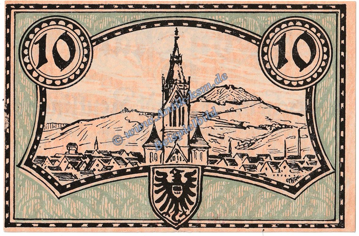 Reutlingen , Banknote 10 Mark Schein in kfr.E , Geiger 448.02 , Württemberg 1918 Grossnotgeld