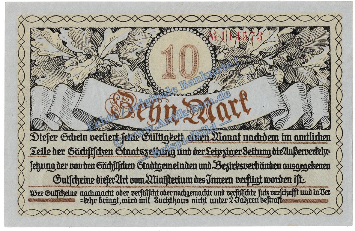 Gutschein / Banknote über Zehn Mark , Amtshauptmannschaft Rochlitz , Großnotgeld