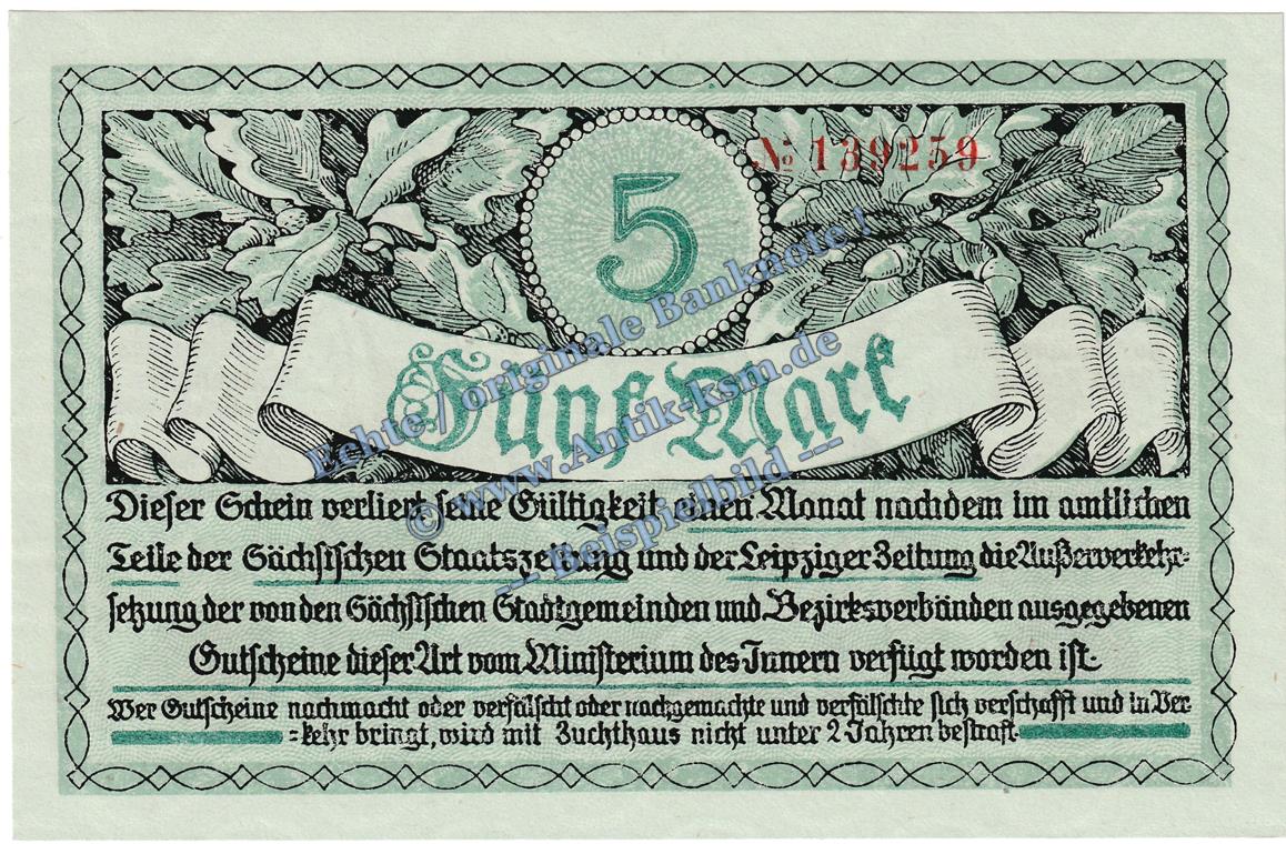 Das Notgeld Set besteht aus 1 x : 5 Mark Schein , Nicht entwertet