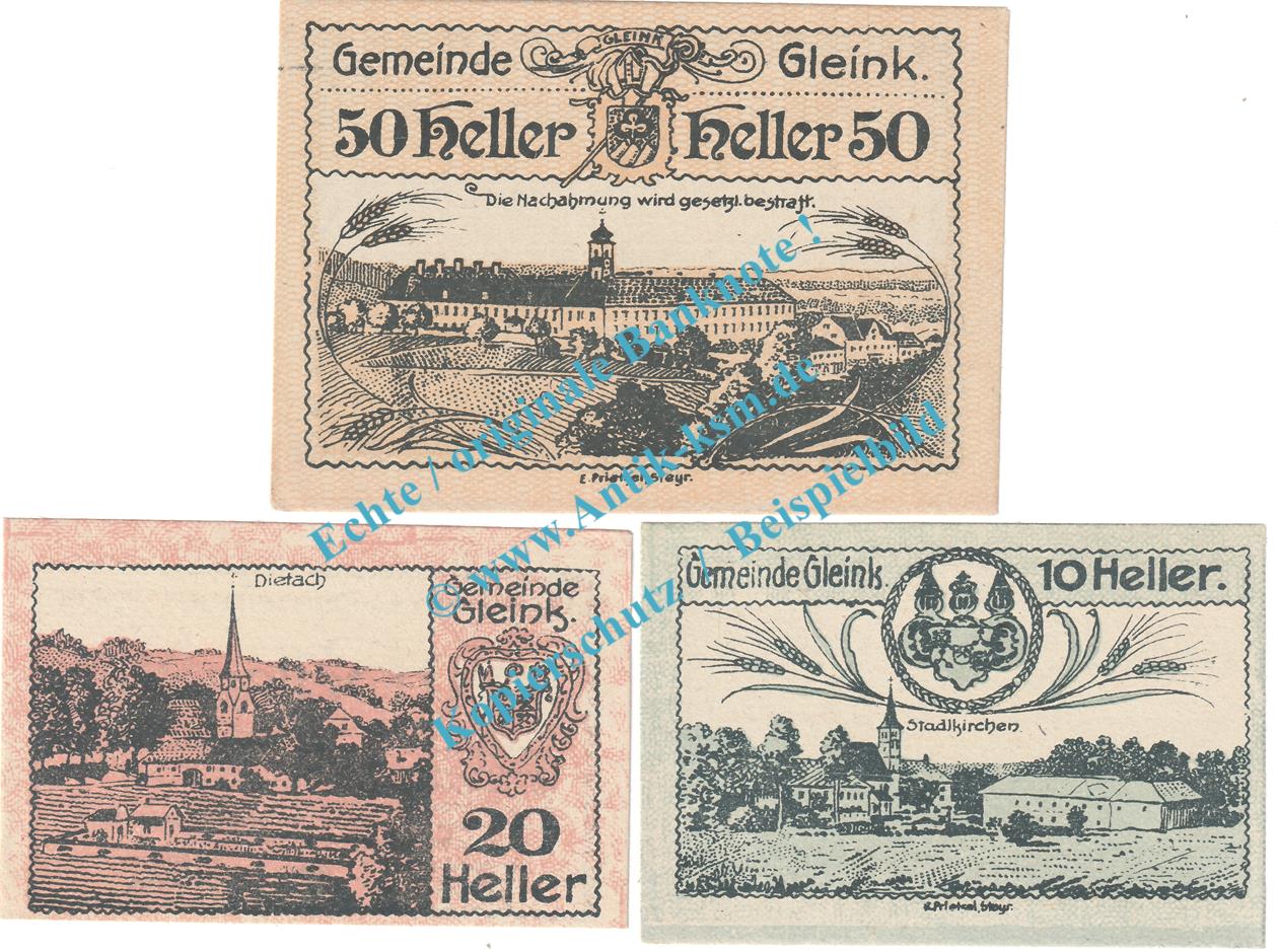 Gleink , Notgeld Set mit 3 Scheinen in kfr. K-K 237... Oberösterreich 1920