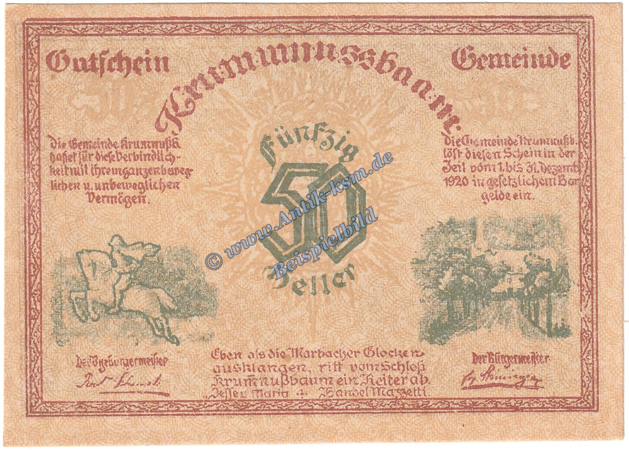 Das Notgeld Set besteht aus 1 x : 50 Heller Schein , Druckfehler - Krummnussbaam