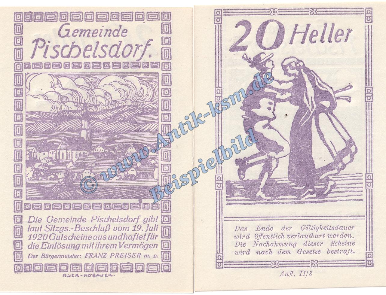 Pischelsdorf , Notgeld 20 Heller Schein in kfr. K-K S752.IV Notgeld 1920 Oberösterreich