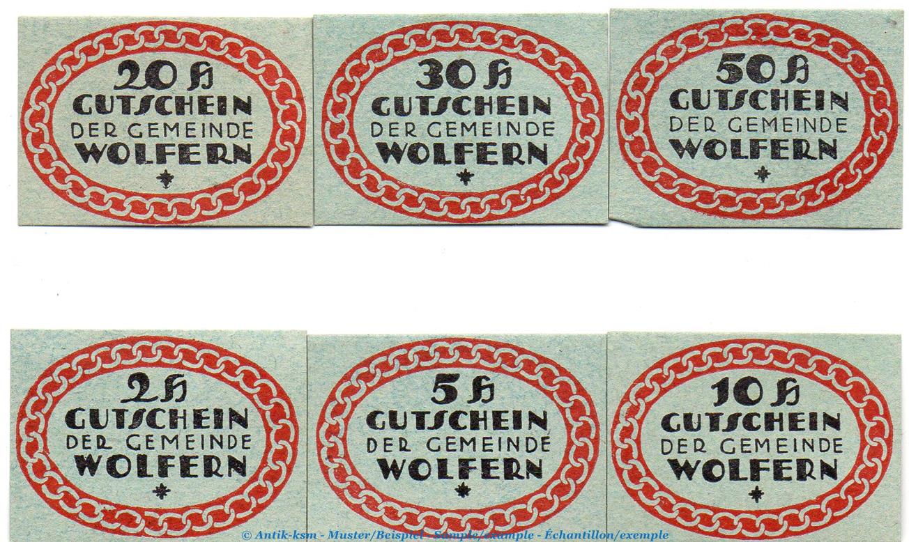 Notgeld Gemeinde Wolfern S.1248.VI.a , Set mit 6 Scheinen in kfr. o.D. Notgeld Oberösterreich