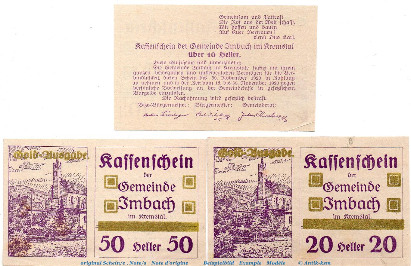 Notgeld der Gemeinde Imbach , österreichisches Notgeld , Gold Ausgabe
