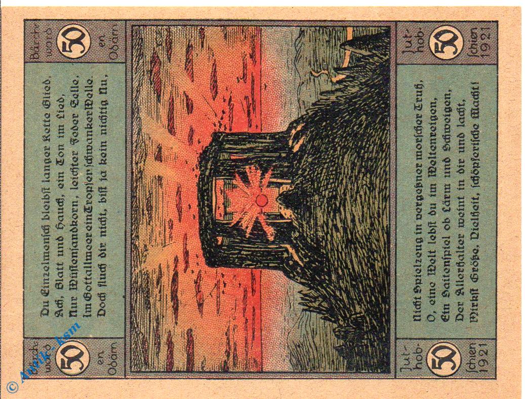 Notgeld Artern Bergwart , 50 Pfennig Schein Papier braun , Mehl Grabowski 45.4 , von 1921 , Thüringen Seriennotgeld