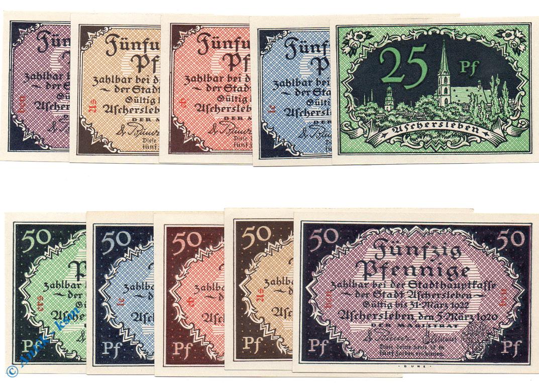 Notgeld Aschersleben , Set mit 10 Scheinen , Mehl Grabowski 50.1 , von 1920 , Sachsen Anhalt Seriennotgeld