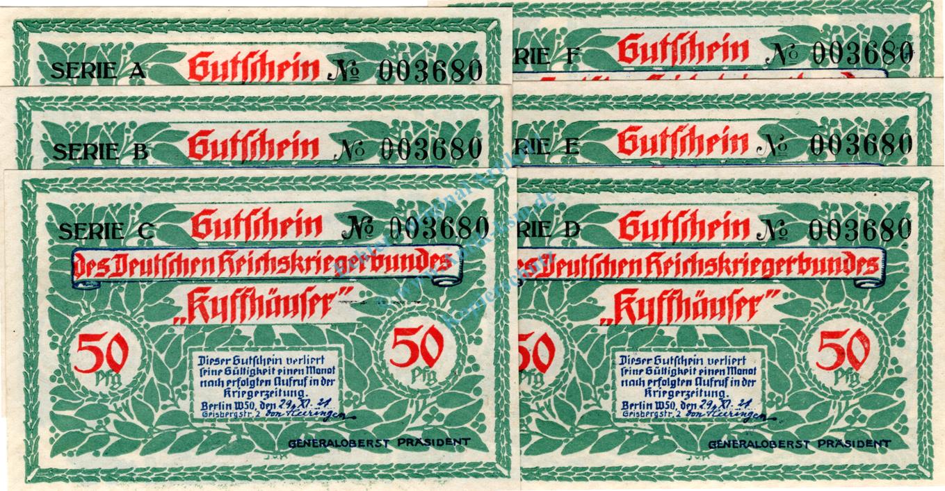 Reichskriegerbund "Kyffhäuser" Berlin , 6 Scheine A - F