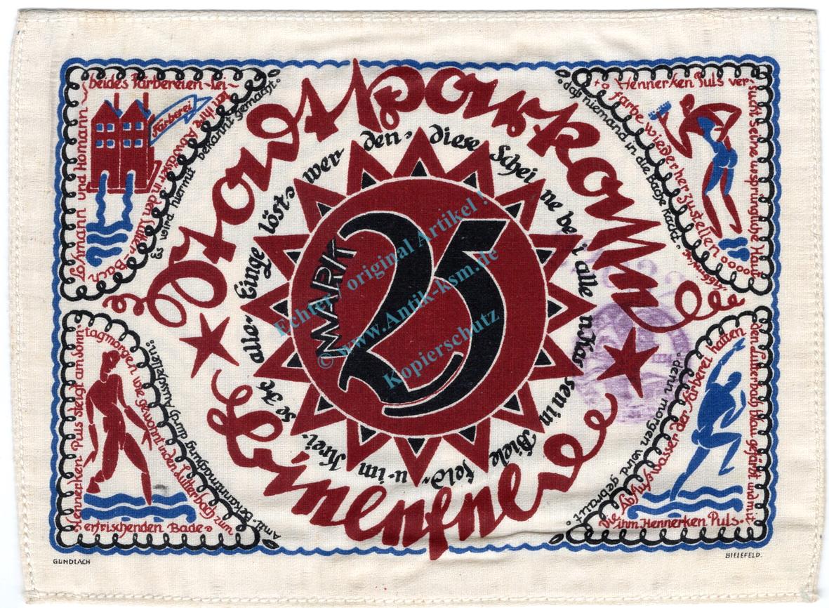 Bielefeld , Notgeld 25 Mark mit KN -Seide- unc-kfr. M-G 103.7.a , Westfalen 1921 Seriennotgeld
