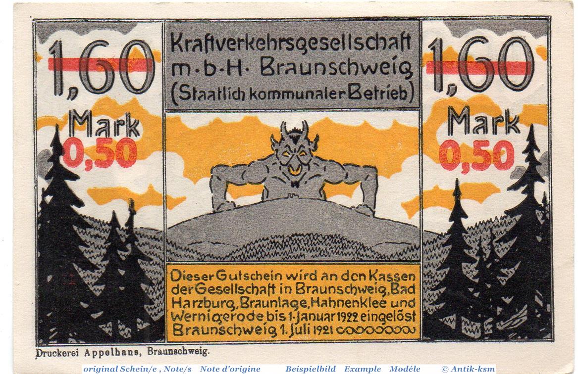 Notgeld Braunschweig , Kraftverkehr , 50 Pfennig Schein in kfr. Mehl Grabowski 156.4 , von 1921 , Niedersachsen Seriennotgeld